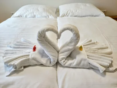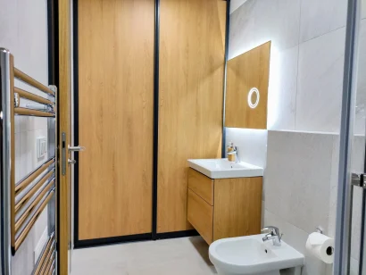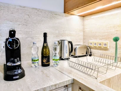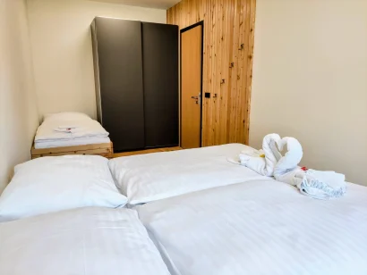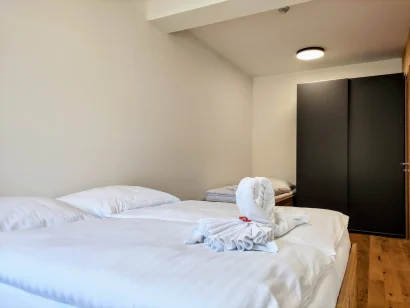 Tento apartmán má 2 ložnice, obývací prostor, kuchyň s kompletním vybavením včetně lednice a myčky nádobí a 1 koupelnu. Koupelna je vybavená sprchou a fénem. K dispozici jsou i ručníky a ložní prádlo.
